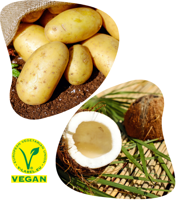 Crema de nectar is made with ingredients from potatoes and coconuts, making it vegan and allergen free. Having none of the potato and coconut flavour, but all their creaminess. With its milky white colour. It has all the smoothness of a dairy cream and all the benefits of a delicious plant-based cream liquor.